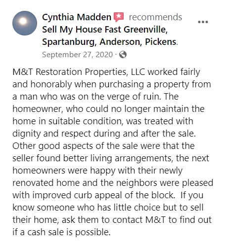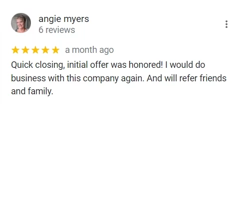 “To start off I would like to Thank Myles & Holly for being so kind & patient & understanding. The process of selling your home by yourself is very simple. What made mine go so smooth is because Myles talked to me & not at me, he understood why I wanted to sell & most important thing I like about Myles he didn’t come in an start talking about what he would offer. We talked about the house & Myles & Holly shared a lot of ideas of what could be done. I must say I was very pleased with my offer it was more than I expected since no major updates had been done to my house. I will tell anyone if your looking to sell than Myles is the man you want, you also get to meet a live person to talk to. It is definitely a legit business. I would recommend to anyone. My hardest part was packing Myles handled the rest.”